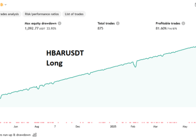 Подобрали несколько протестированных конфигураций/настроек (на данный момент ~20  монет), которые показали лучшую прибыль в бектестинге за последние 24 месяца.